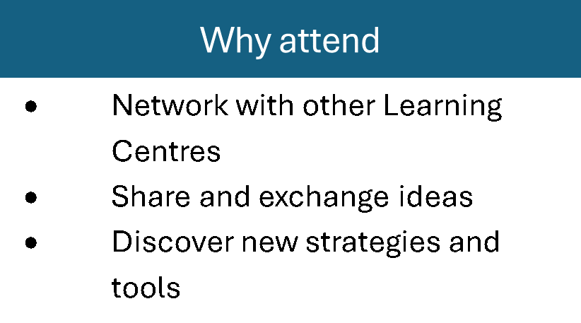 We encourage all Learning Centres to start planning/booking early and apply for local grants to enable members of your Learning Centre to attend this event.